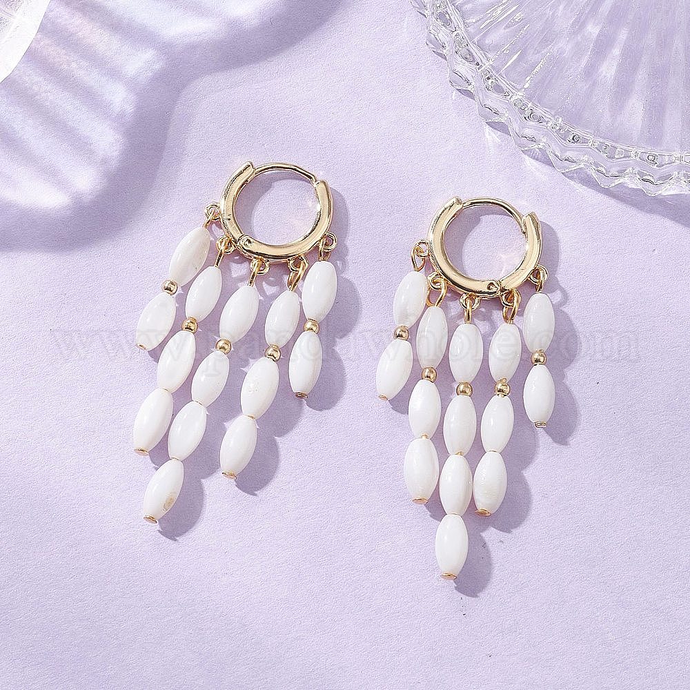 Латунь люстра серьги, с кисточкой из овальных бусин из окрашенной натуральной ракушки