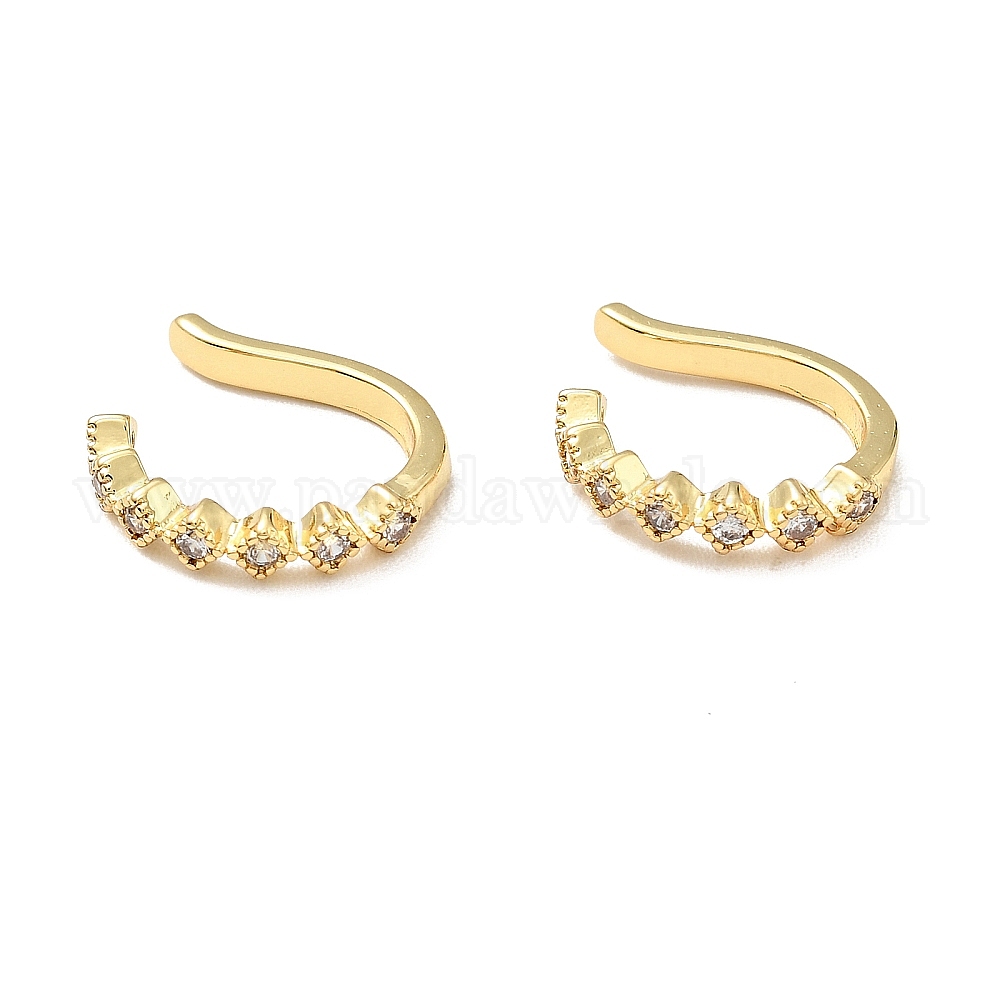 Серьги-каффы с ромбами из прозрачного циркония, украшения из латуни для непроколотых ушей, без кадмия и без свинца