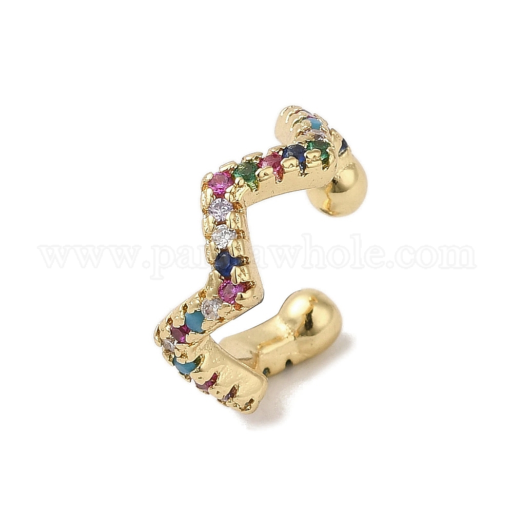 • Разноцветный Женские волнистые серьги-манжеты из латуни с покрытием из кубического циркония, реальный 18 k позолоченный, красочный, 12.5x4.5 мм