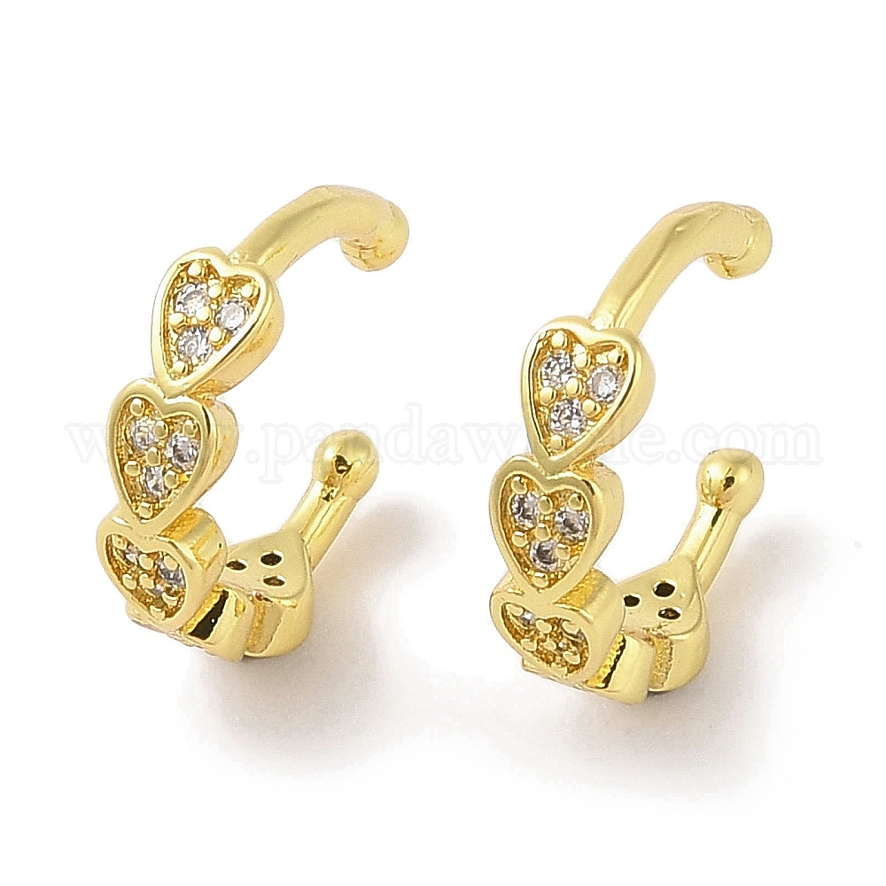 Женские серьги-манжеты из латуни с микропаве и прозрачным цирконием, сердце