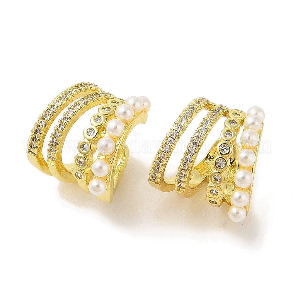 • Настоящее золото 18K Латунные серьги-манжеты из прозрачного кубического циркония, с бусинами из искусственного жемчуга abc для женщин, реальный 18 k позолоченный, 14.5x14 мм