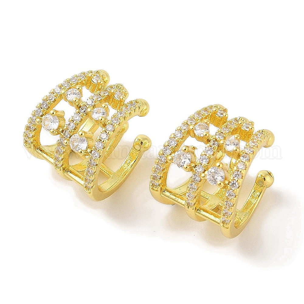 • Настоящее золото 18K Женские серьги-манжеты из латуни с микропаве и прозрачным цирконием, реальный 18 k позолоченный, 14.5x13 мм