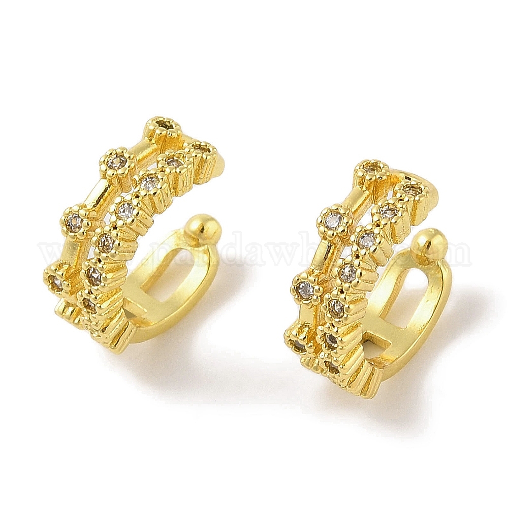 • Настоящее золото 18K Женские серьги-манжеты из латуни с микропаве и прозрачным цирконием, реальный 18 k позолоченный, 13x5.5 мм