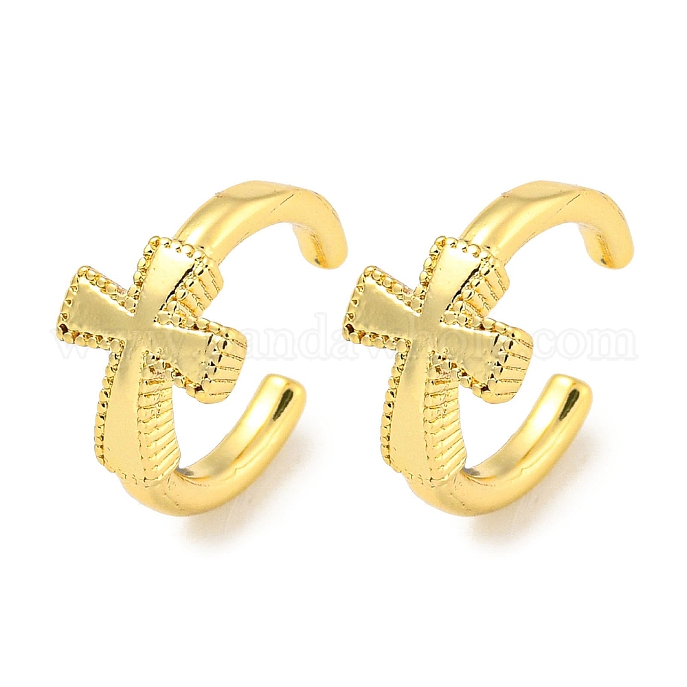 • Настоящее золото 18K Латунь манжеты серьги, крестик, реальный 18 k позолоченный, 12x6 мм