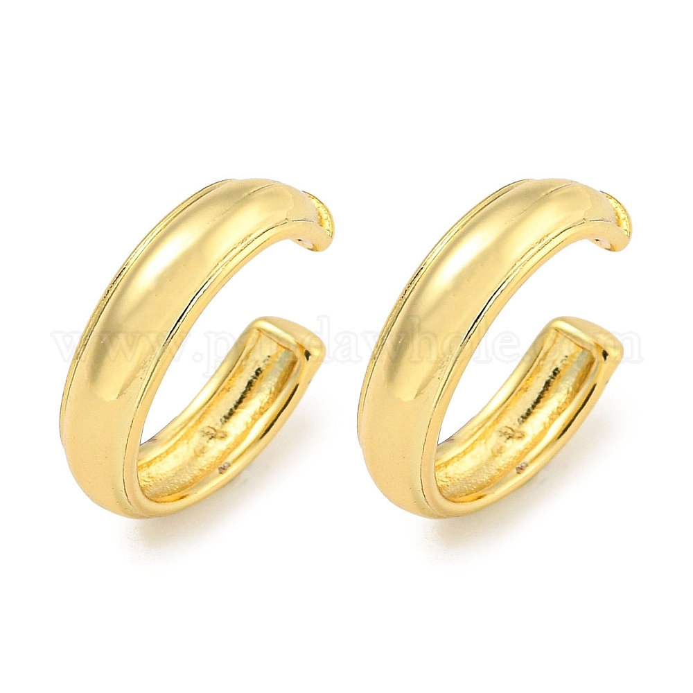 • Настоящее золото 18K Латунь манжеты серьги, кольцо, реальный 18 k позолоченный, 15x3.5 мм