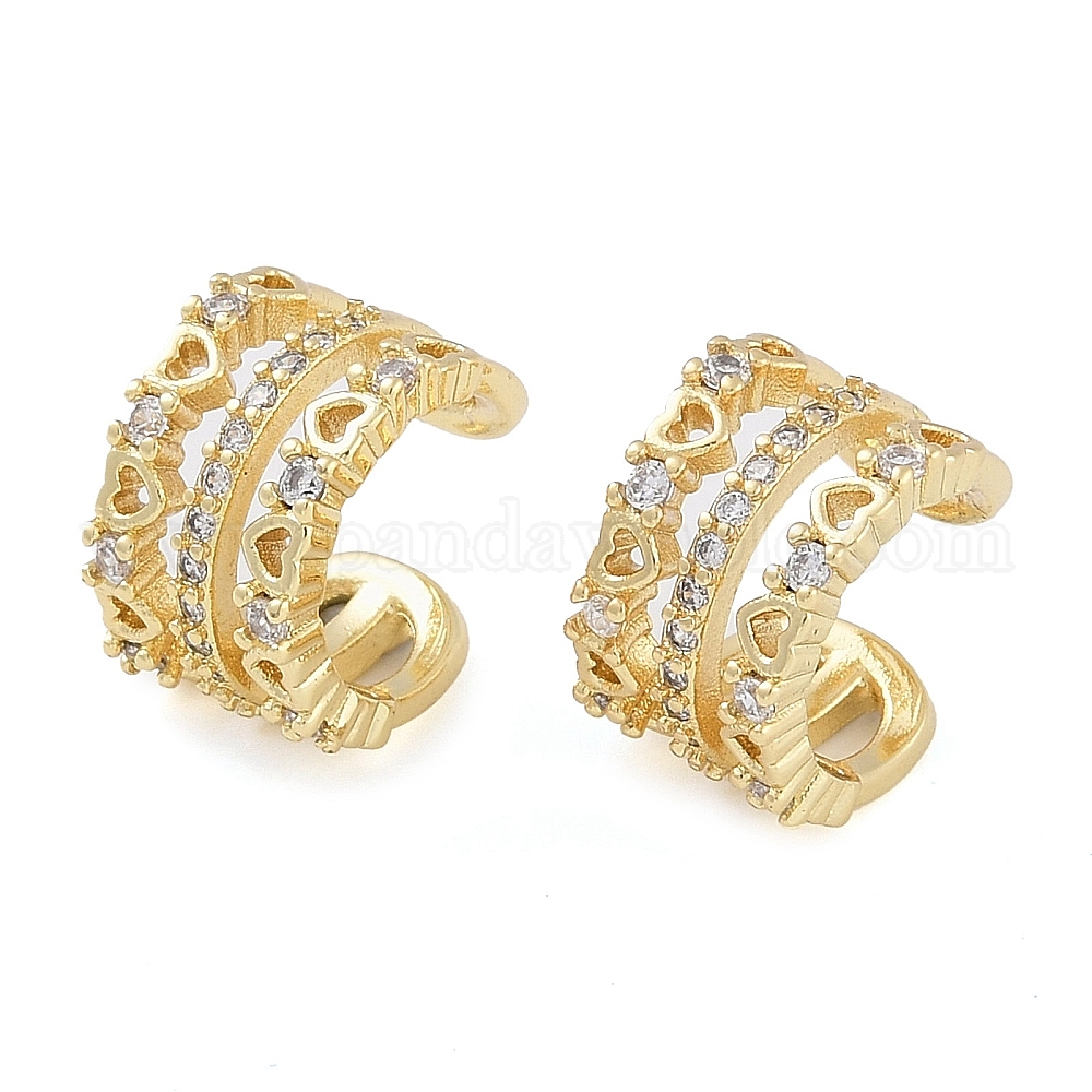 • Настоящее золото 18K Женские серьги-каффы из латуни с микропаве и прозрачным цирконием, сердце, реальный 18 k позолоченный, 13x9 мм