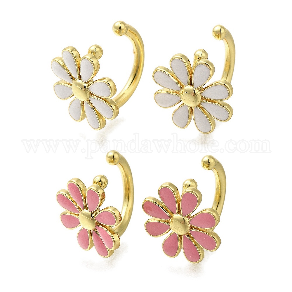 Серьги-манжеты из латуни с цветочным покрытием, с эмалью, долговечный, без свинца и без кадмия, реальный 18 k позолоченный