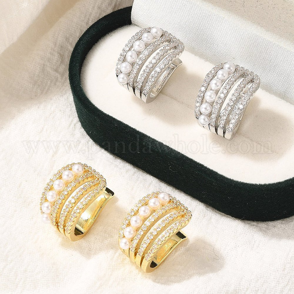 Серьги-каффы из латуни с микропаве из кубического циркония, с ABS имитации жемчуга, долговечный, без свинца и без кадмия