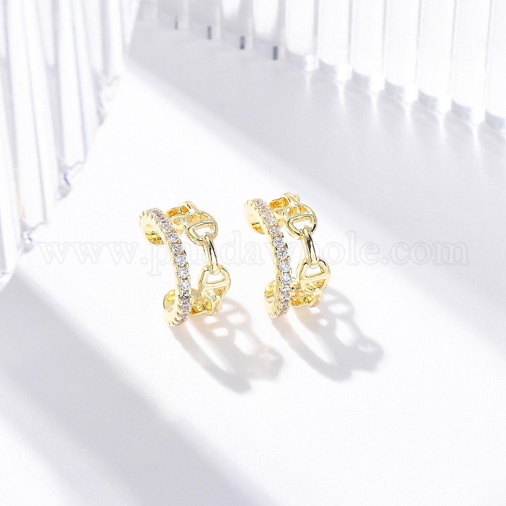 Серьги-манжеты из латуни с микропаве из прозрачного кубического циркония, без свинца и без кадмия, цепочка-оберег