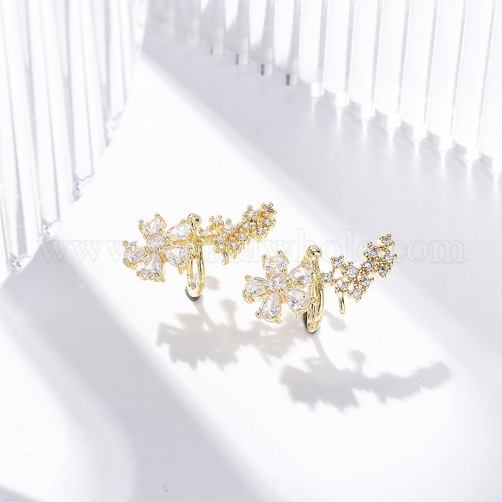 Серьги-манжеты из латуни с микропаве из прозрачного кубического циркония с цветочным покрытием, без свинца и без кадмия (02Z7HR)