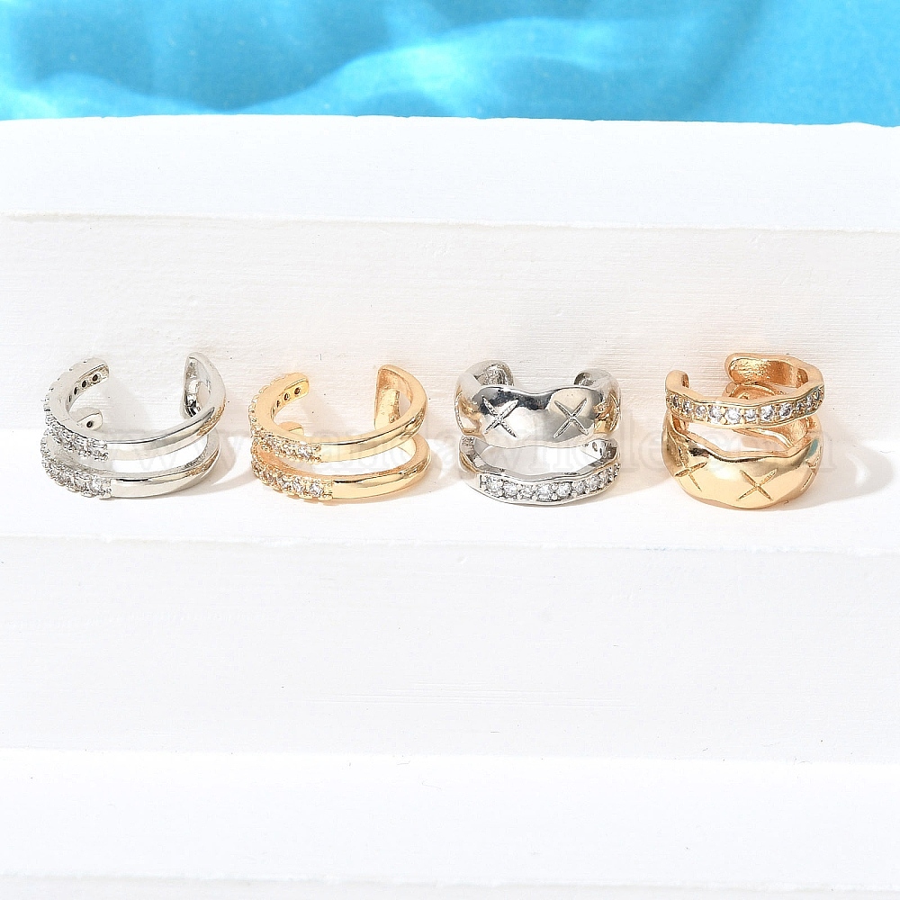 Серьги-каффы из латуни с прозрачным кубическим цирконием, двухслойный с-образный