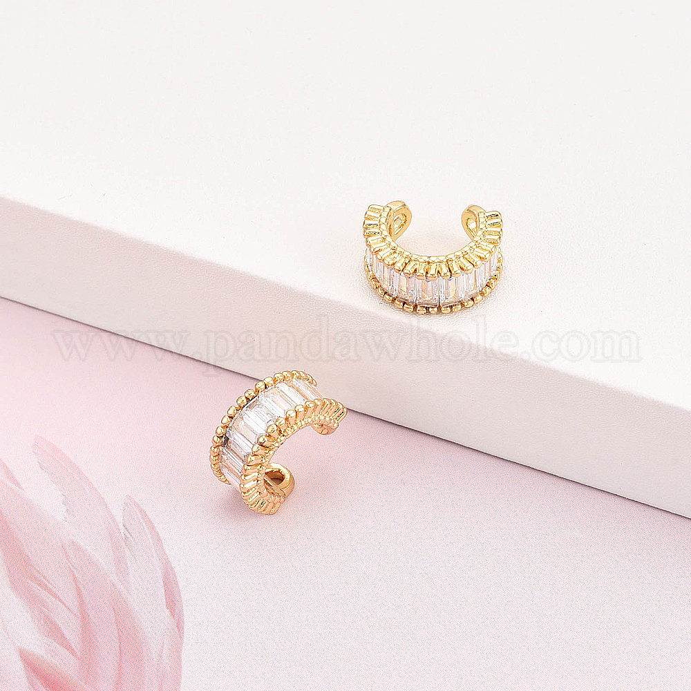 Латунные серьги-манжеты из прозрачного кубического циркония