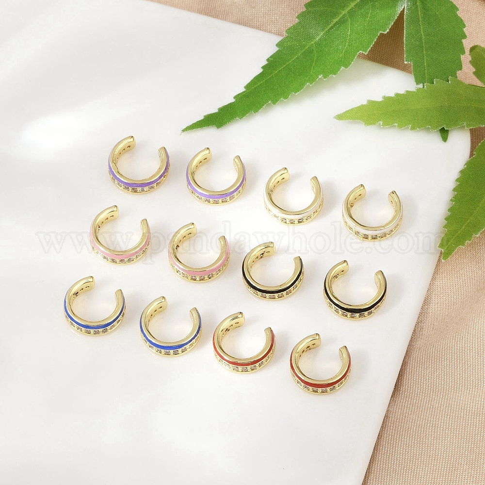 C-образные латунные серьги-каффы с микропаве из кубического циркония, с эмалью, долговечный, без кадмия и без свинца, стойки покрытие, реальный 18 k позолоченный