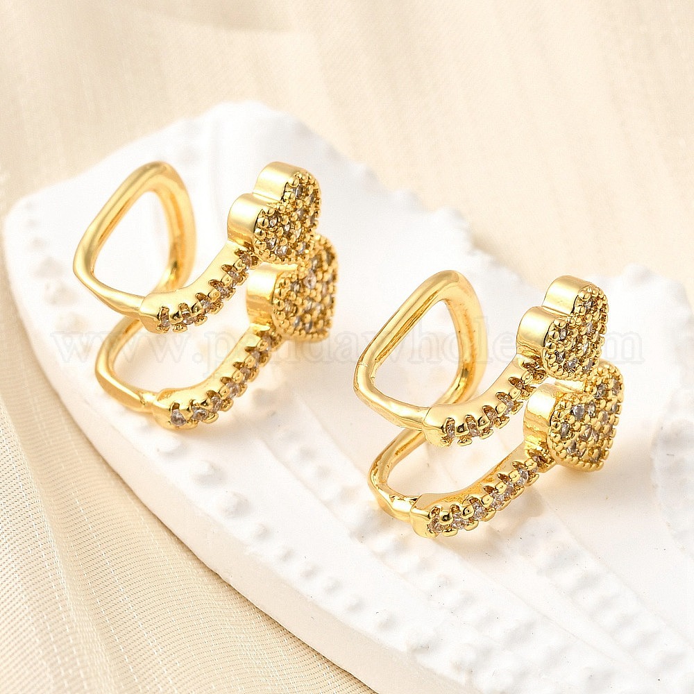 Латунные серьги-манжеты из прозрачного кубического циркония, сердце