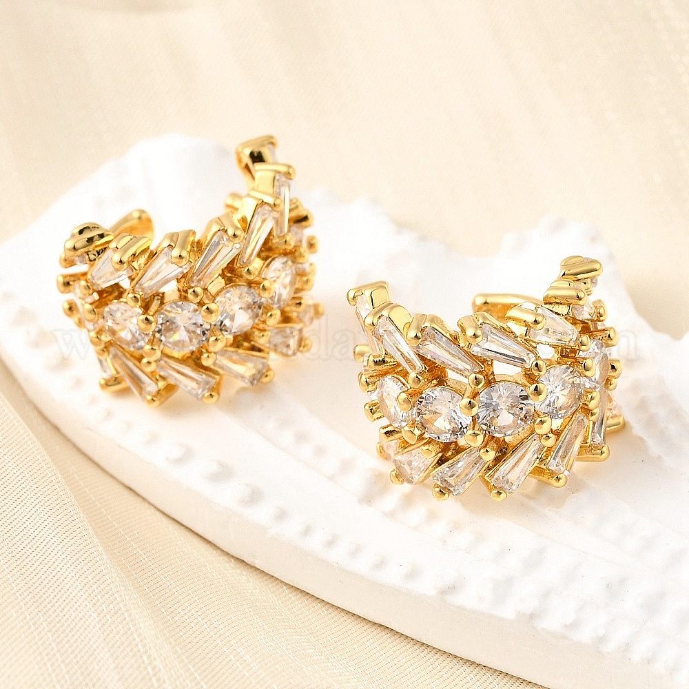 Латунные серьги-манжеты из прозрачного кубического циркония, цветок