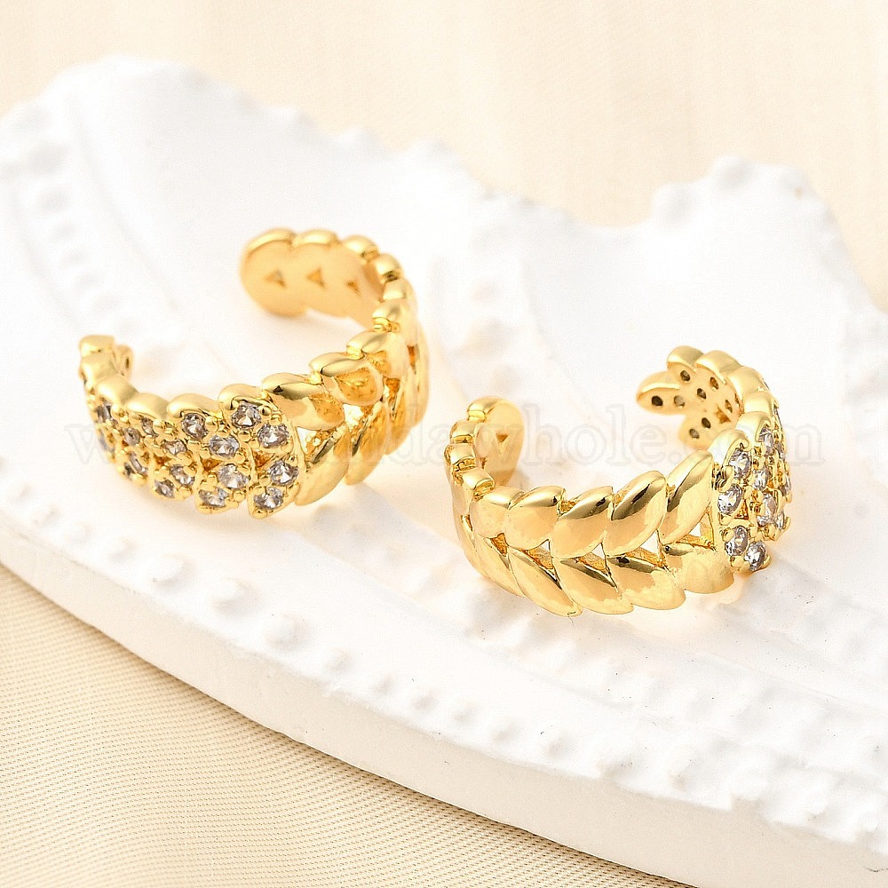 Латунные серьги-манжеты из прозрачного кубического циркония, лист