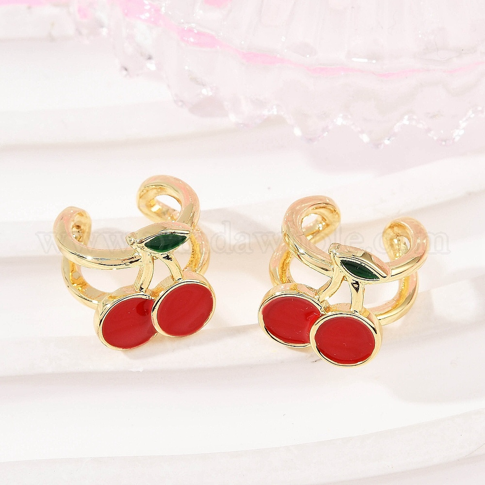 • Золотой Серьги-манжеты с эмалью из латуни, вишня, золотые, 11x12.5 мм