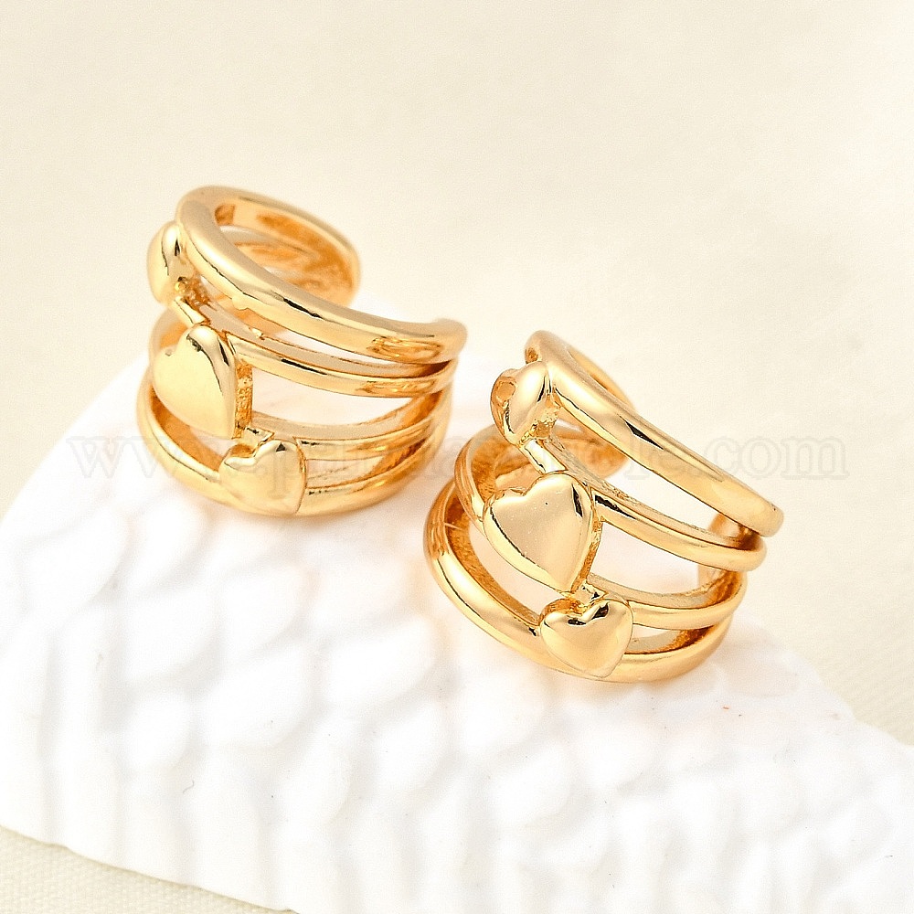 • Настоящее золото 18K Латунь манжеты серьги, с-образный с сердцем, реальный 18 k позолоченный, 12.5x12.5x10.5 мм