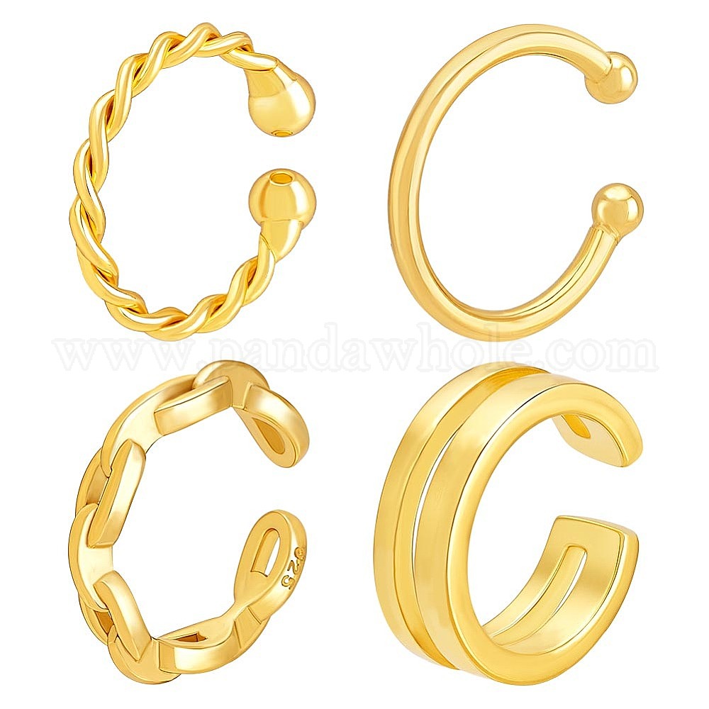 4 шт. 4 стилей 925 серьги-манжеты из стерлингового серебра, c-образный