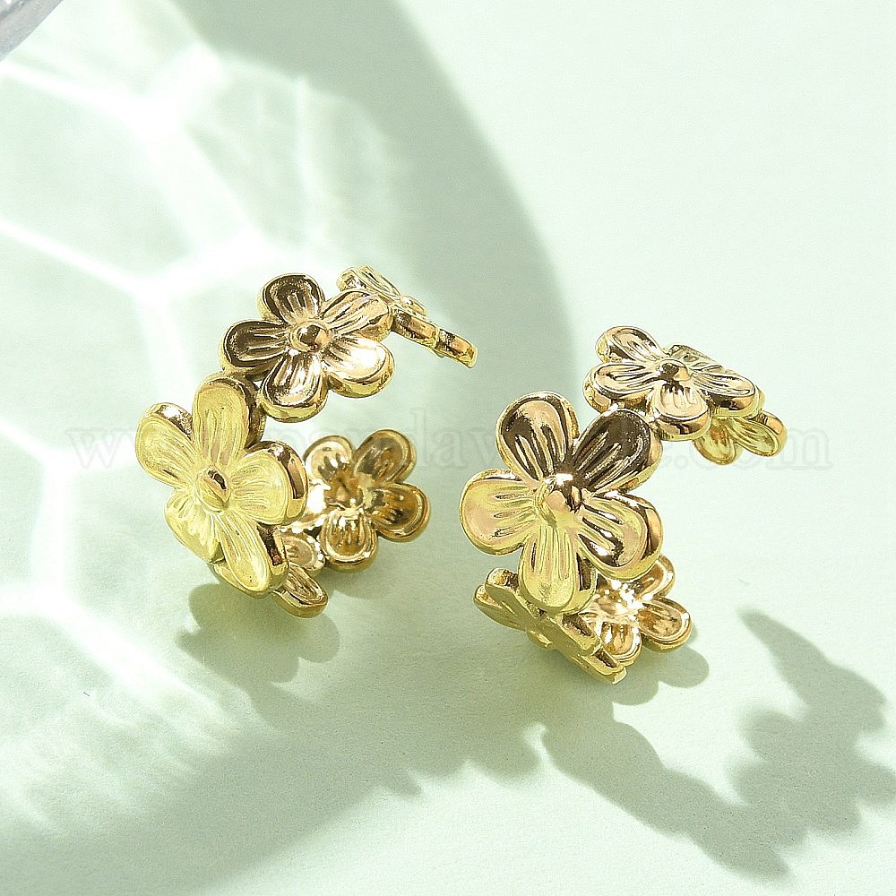 • Настоящее золото 14K Ионное покрытие (ip) 304 серьги-манжеты из нержавеющей стали в форме цветка для женщин, реальный 14 k позолоченный, 12.5x8 мм