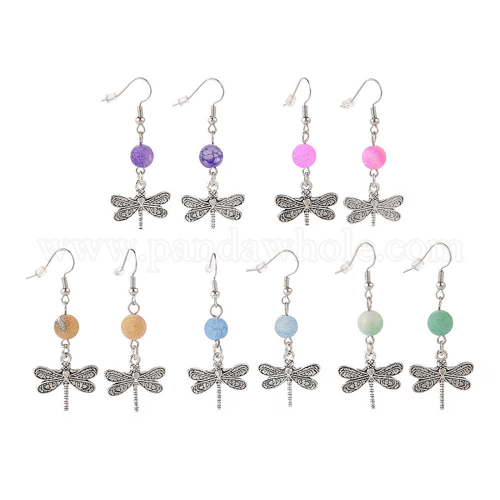 Серьги с подвесками из натурального состаренного агата, подвеска из сплава в тибетском стиле для женщин, с латунными крючками для серег
