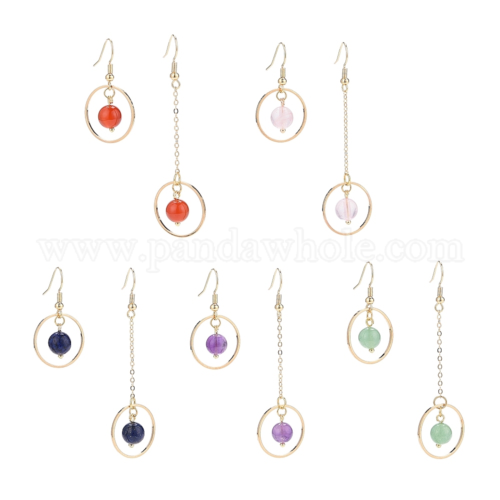 Природных драгоценных камней круглые бусины болтаться серьги, золотые 304 асимметричные серьги-капли из нержавеющей стали с кисточками и латунными швензами