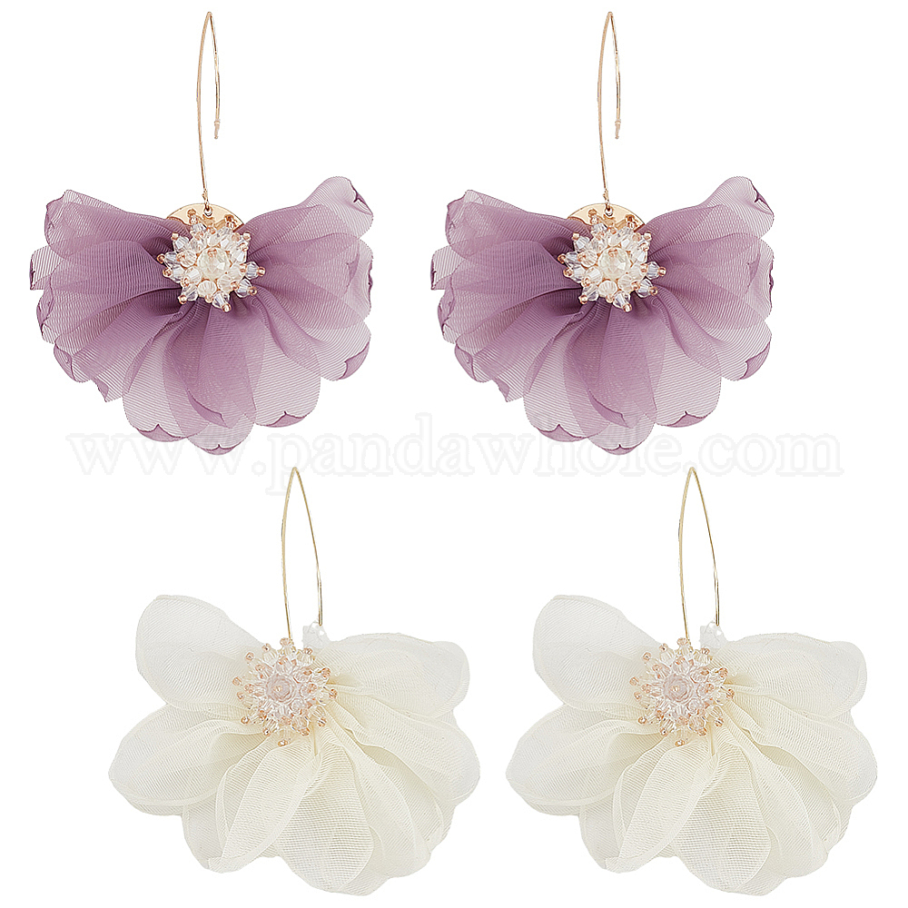 2 пары 2 цветные кружевные цветочные серьги с кристаллами и стразами, длинные серьги из легкого золота и цинкового сплава для женщин