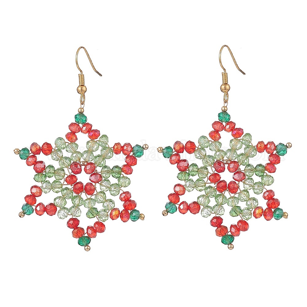 Серьги со снежинками из стеклянных бусин, Золотая латунная проволока для рождественских украшений для женщин