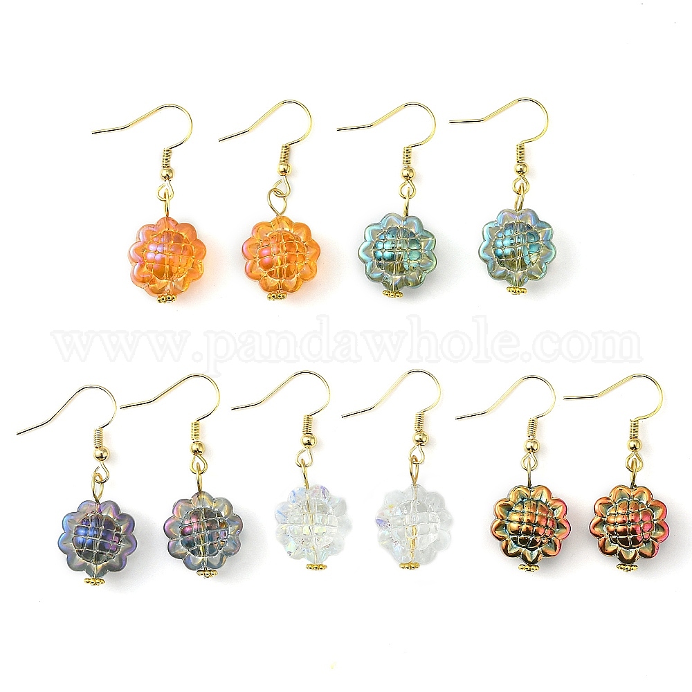 Стеклянные серьги с подвесками в виде подсолнуха, настоящие 18k позолоченные 304 серьги из нержавеющей стали