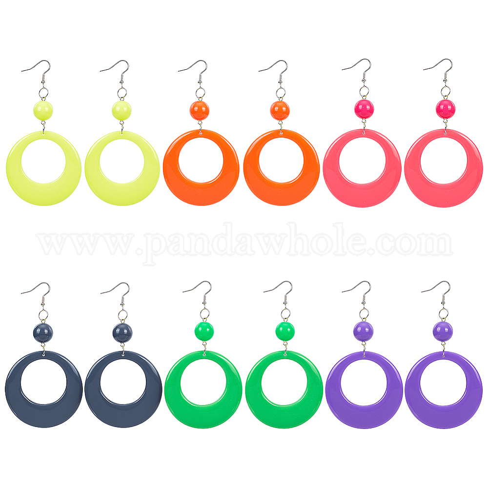 Серьги-подвески из смолы в форме пончика: длина около 97 мм., шириной 54 мм , 6 цветов, 1 пара / цвет, 6 пары;