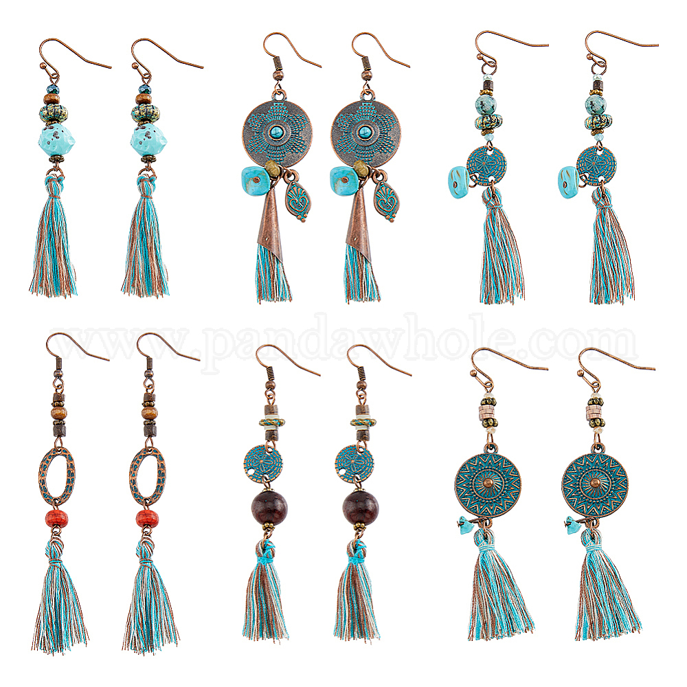 6 пары 6 стили этнические полиэстеровые серьги-кисточки с подвесками, длинные серьги-капли из сплава