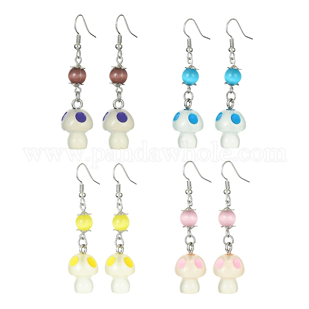 Серьги с подвесками из смолы в виде грибов, Длинные серьги-капли из стеклянных бусин с латунными штифтами (02NZXD)