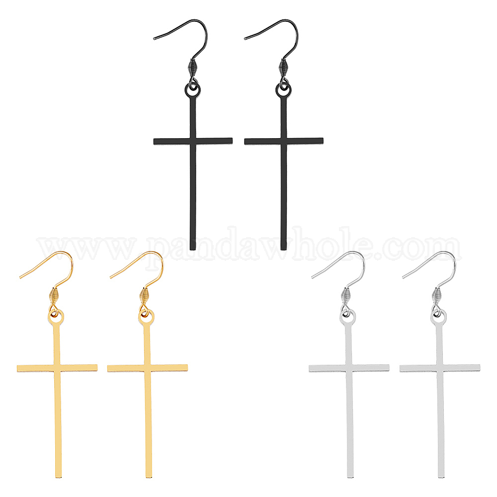 3шт 3 цвета серьги-подвески из нержавеющей стали, крестик