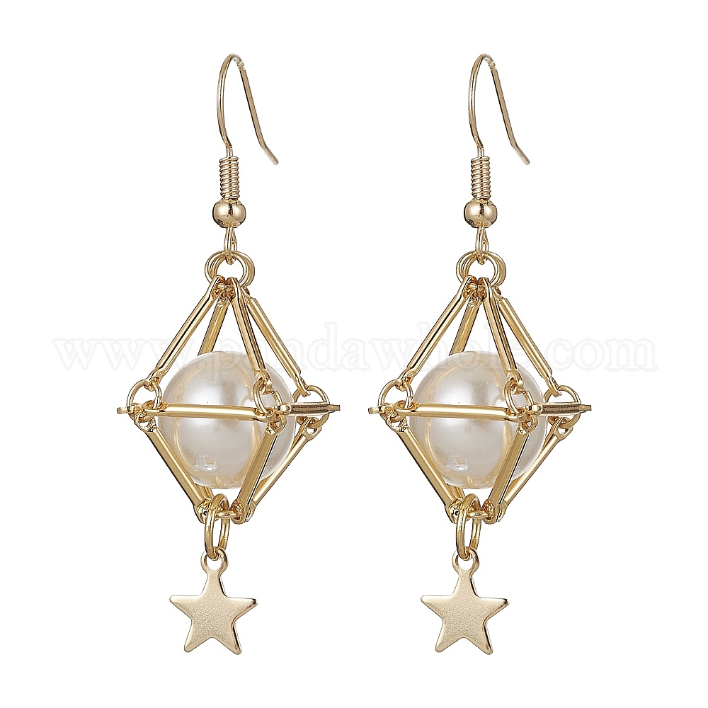 Оболочки жемчужные болтаться серьги, длинные серьги-капли из настоящей позолоченной латуни 18k
