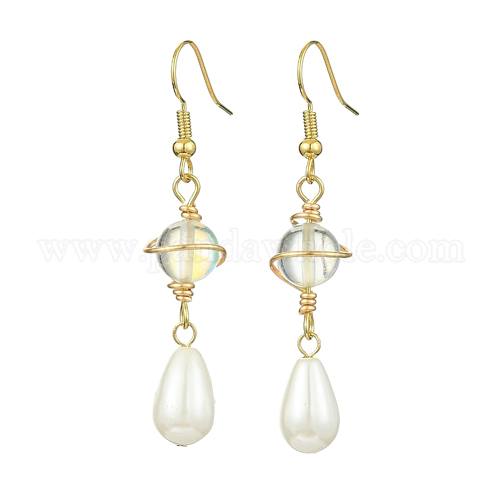 Серьги из натурального жемчуга, серьги-подвески из легированной проволоки