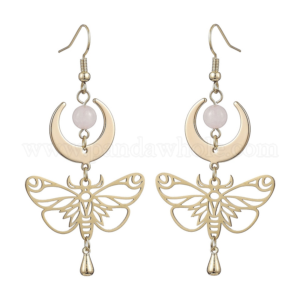 Естественно выросли болтаться серьги кварцевые, Золотая латунная бабочка с длинными серьгами-каплями в виде луны