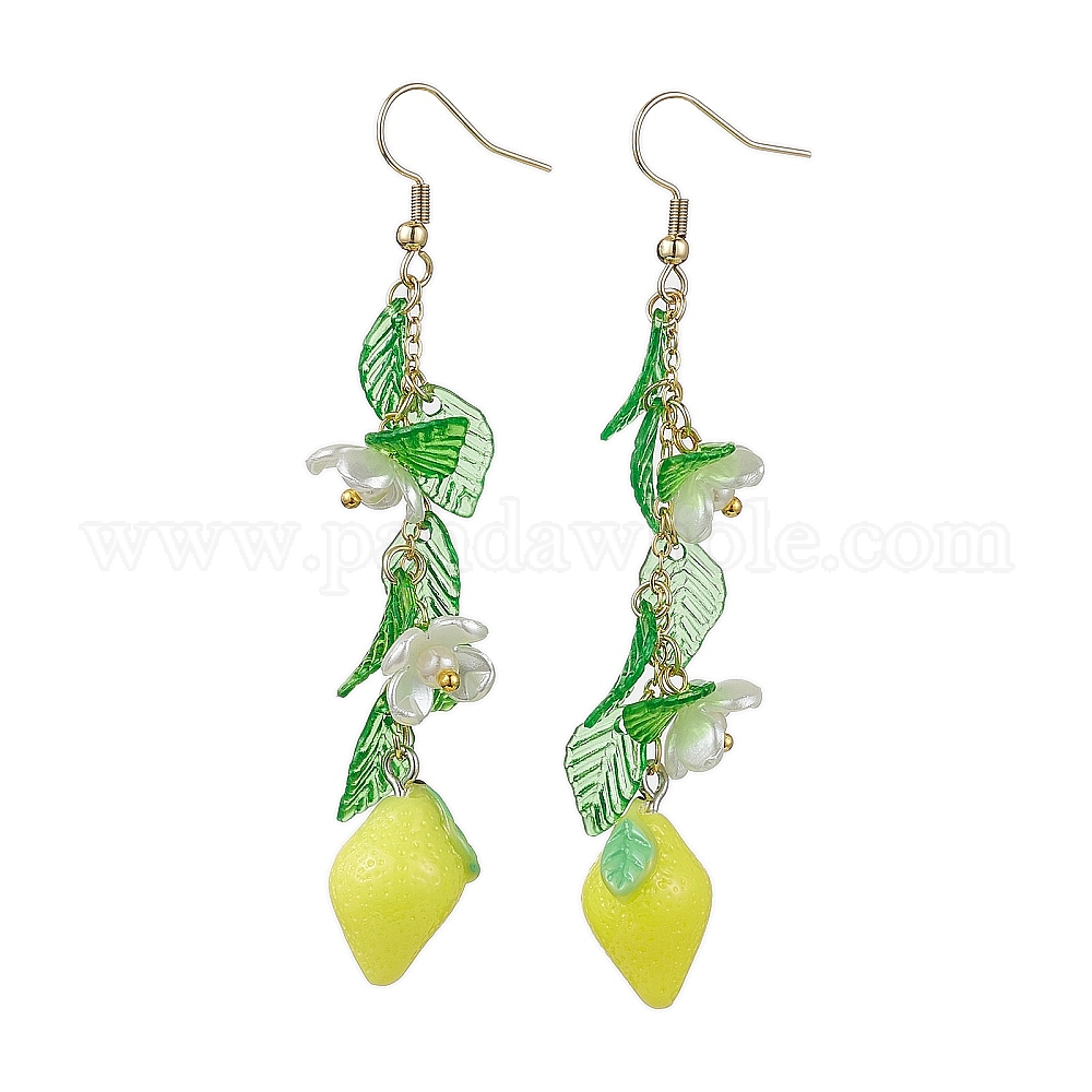 • Лимон Серьги с подвесками из акрила 304 из нержавеющей стали, фрукты, лимон, 78 мм