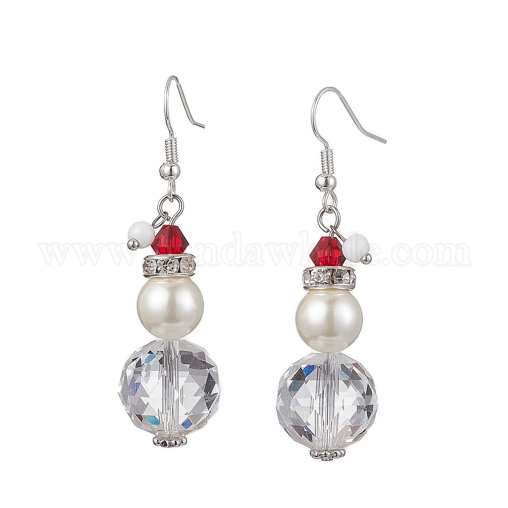 Болтающие серьги из стекла, с латунными крючками для серег, снеговик (02SBFG)