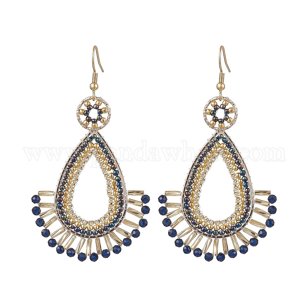 Бисер ручной работы с серьгами с подвесками из синтетической синей шпинели, слеза