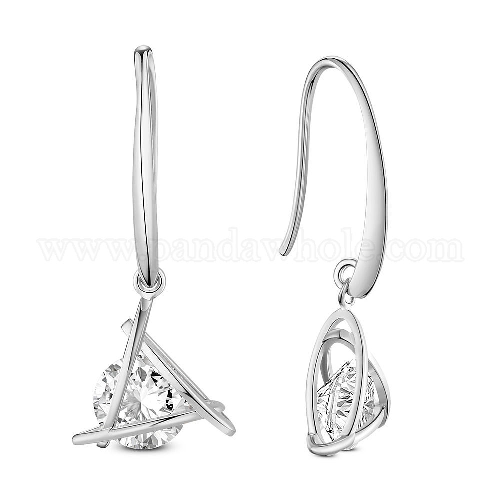Латунь болтаться серьги, с ааа класс фианитами, треугольные, прозрачные (02SDB9)