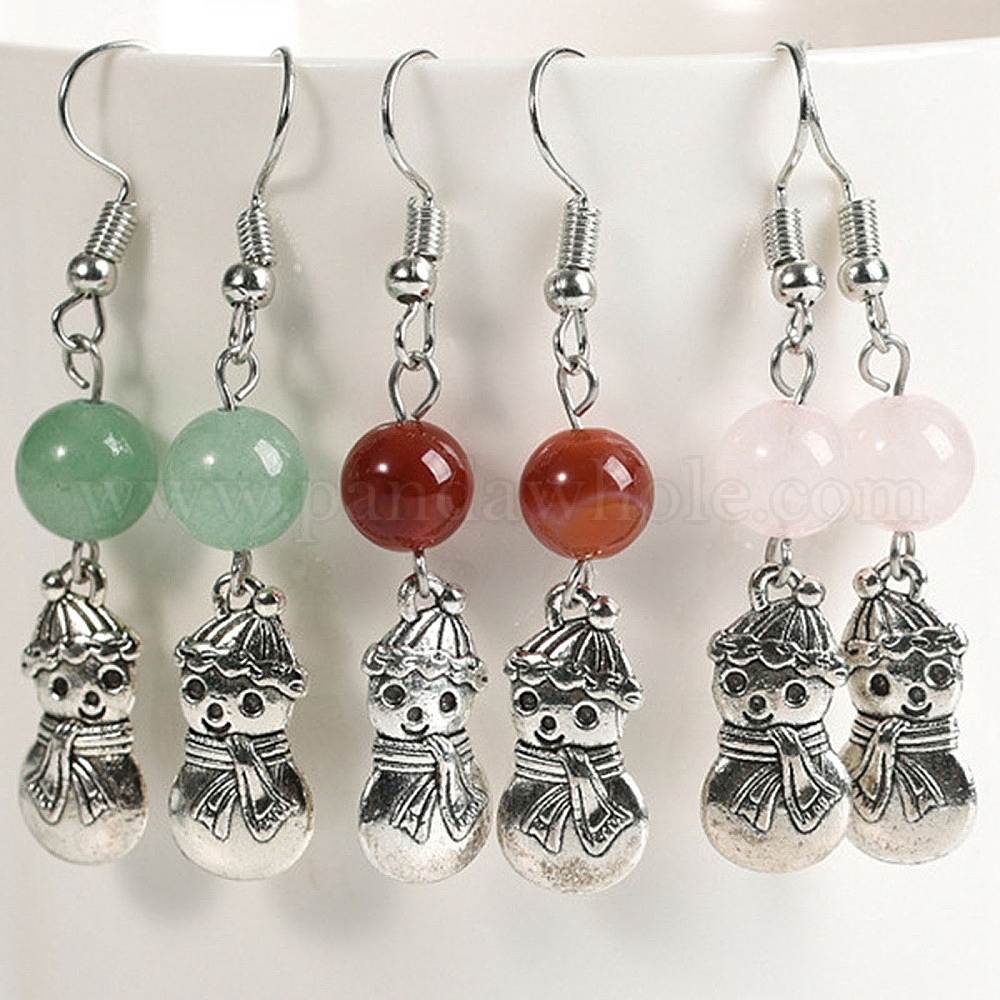 Болтаться серьги природный драгоценный камень, Рождественские украшения в виде снеговика из сплава для женщин