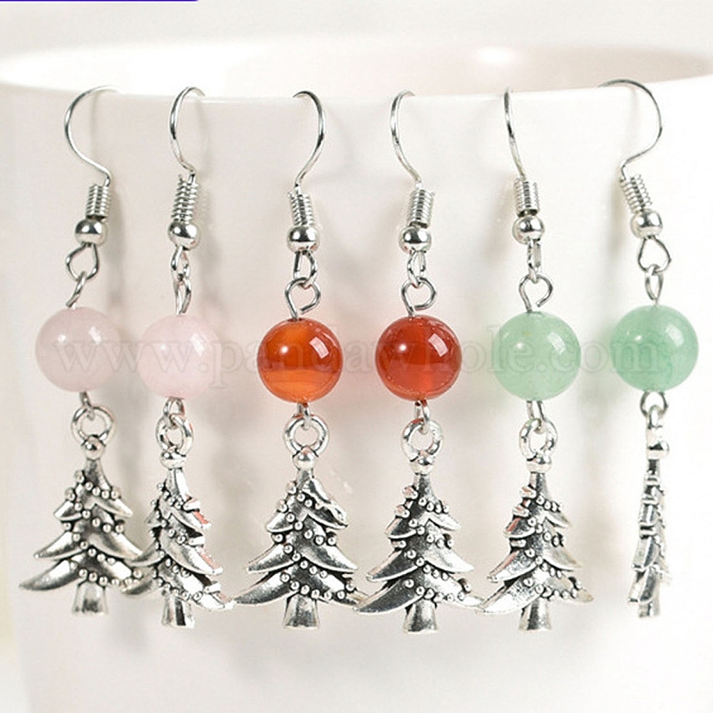 Болтаться серьги природный драгоценный камень, елочные украшения из сплава для женщин