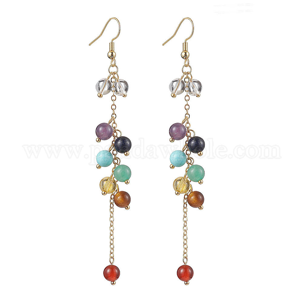 • Смешанные камни Круглые серьги болтаться драгоценного камня, с латунной фурнитурой , 100 мм