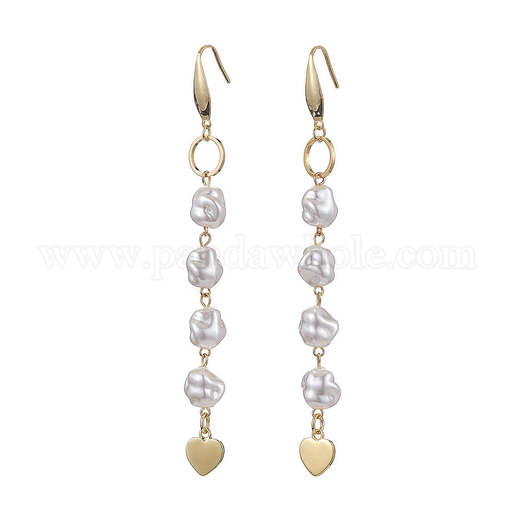 Латунь болтаться серьги, с пластиковыми бусинами из искусственного жемчуга, сердце