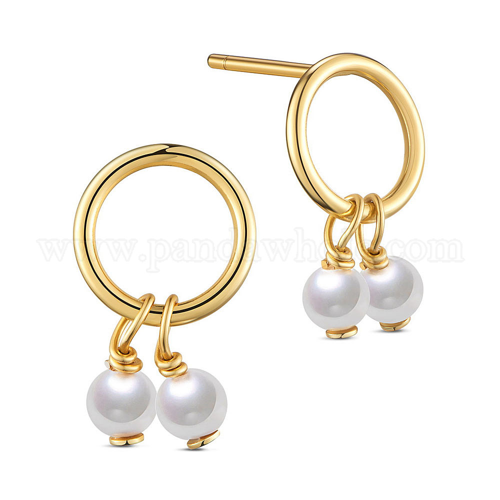 • Настоящее золото 18K 925 стерлингового серебра серьги стержня, с жемчугом, реальный 18 k позолоченный, 13.6x8.1 мм