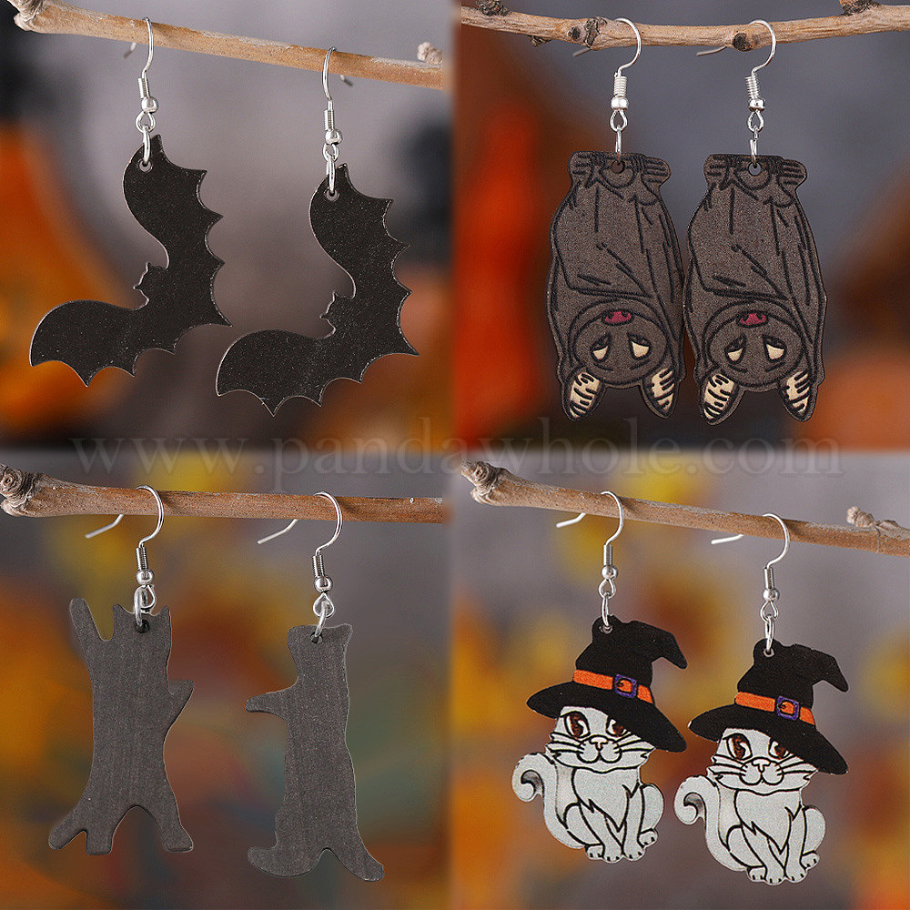 Деревянные серьги на Хэллоуин, с серьгами из нержавеющей стали и крючком, платина