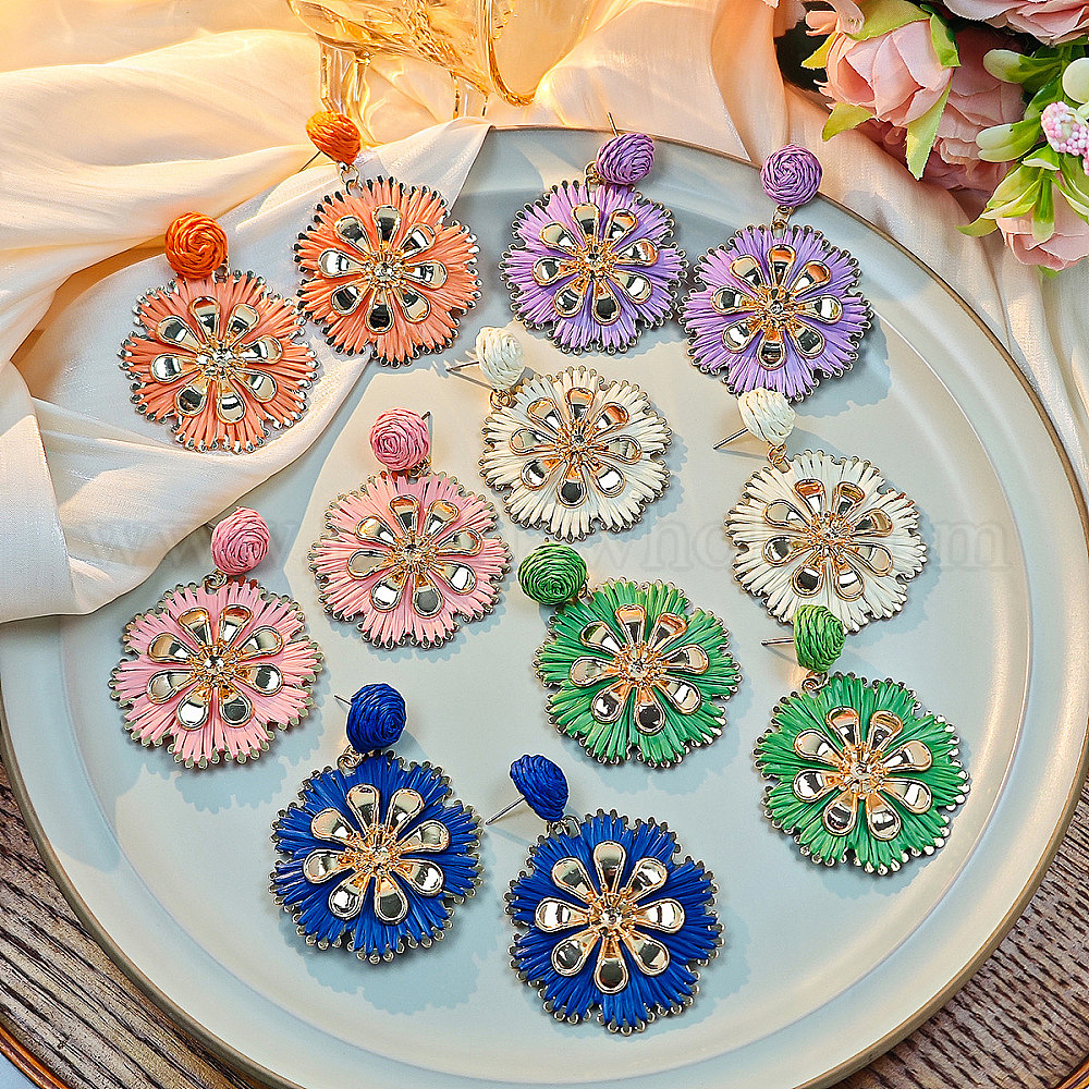 Серьги с подвесками в богемном стиле из рафии с цветком, со сплавом, украшения для женщин, платина