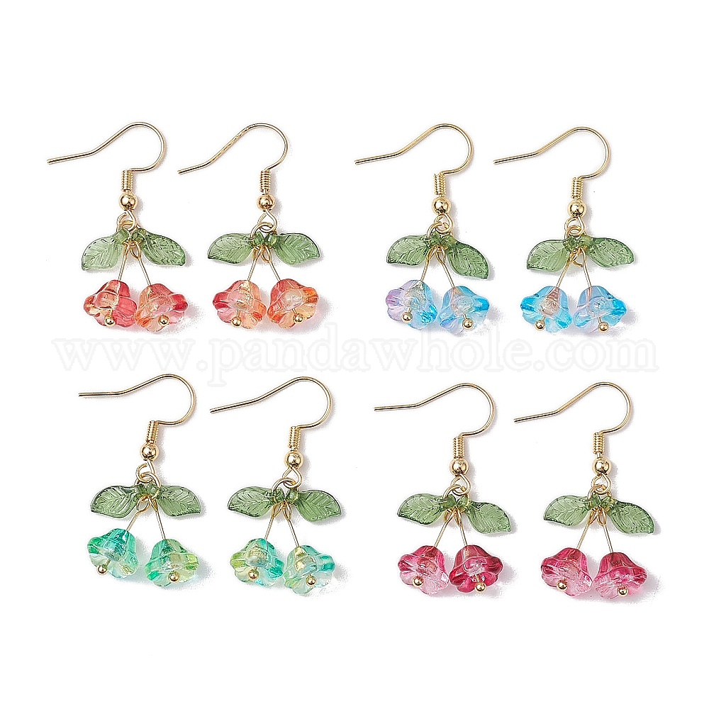 4пары 4 стилей подвесных украшений из стекла и акрила, с латунными крючками для серег, цветок, золотые, болтаются серьги