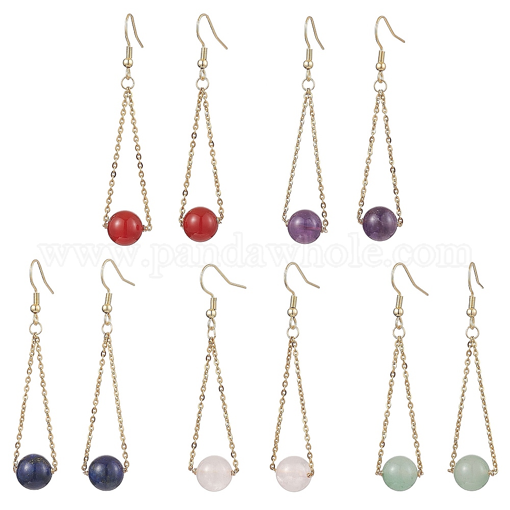 • Золотой 304 серьги из нержавеющей стали с подвесками из смешанного натурального камня, круглые, золотые, 60x12 мм