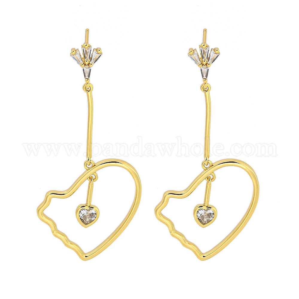 Серьги из латуни с микро-паве в форме сердца, прозрачные серьги с кубическим цирконием, без кадмия и без свинца, долговечный